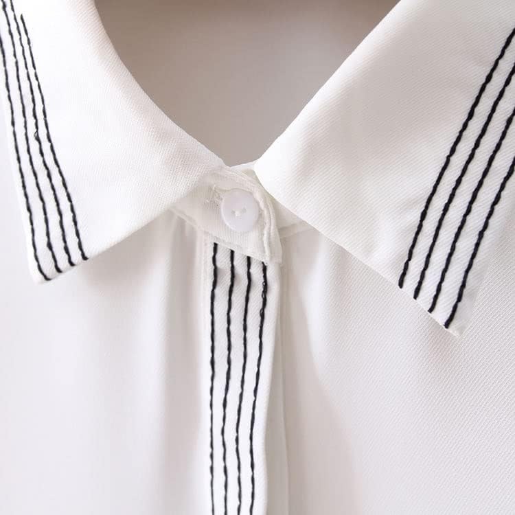 CZDYUF Long Sleeve Patchwork Shirt Women's Spring and Autumn Striped Contrast Chiffon Casual Bottomed -Piece Shirt (Color : D, Size : 2XL)