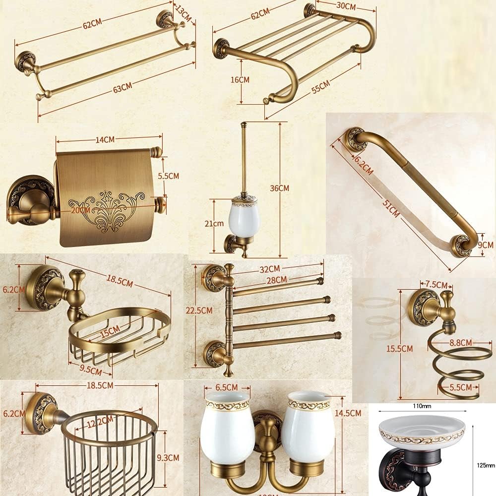 ZSEDP Antique Brass Carved Towel Paper Holder Bathroom Towel Rack Bathroom Accessories Retro Faucet Bathroom Hardware Set