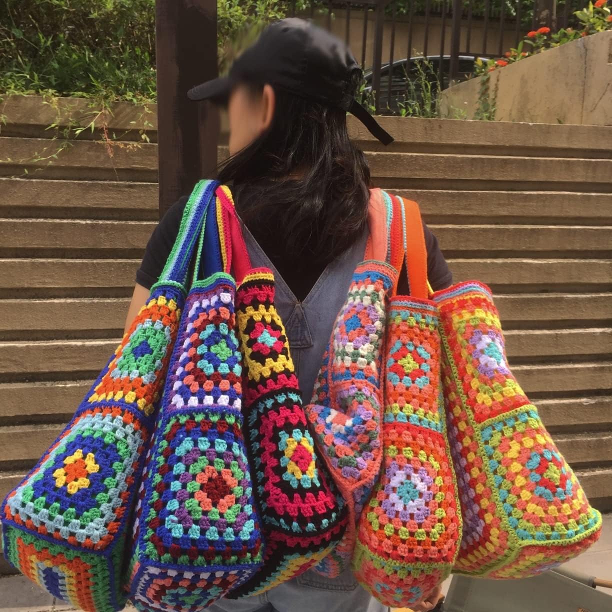 TKFDC Bohemian Crochet Women Shoulder Bags Knitting Large Tote Bag Casual Lady Handbags Big Shopper Purses Summer (Color : D, Size : 1)