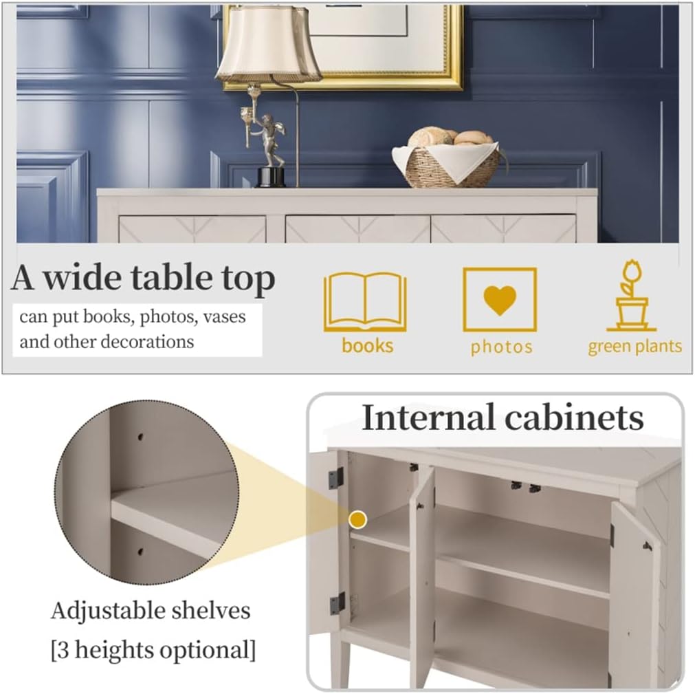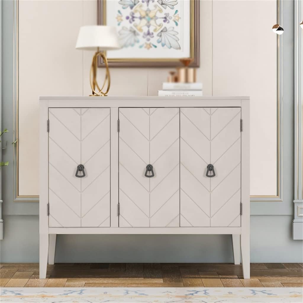 JFGJL Buffet Sideboard Wooden Cabinet with Adjustable Shelves for Entryway Living Room Bedroom Antique Gray Sideboard