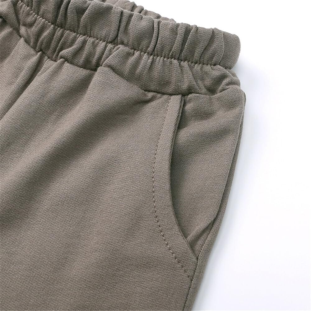 QueenLine 10Sets Bulk Items Wholesale Children Sets Long Sleeves Pullover Tops Hoodie + Shorts Two Piece Sets Casual Solid Tracksuits Khaki 160cm