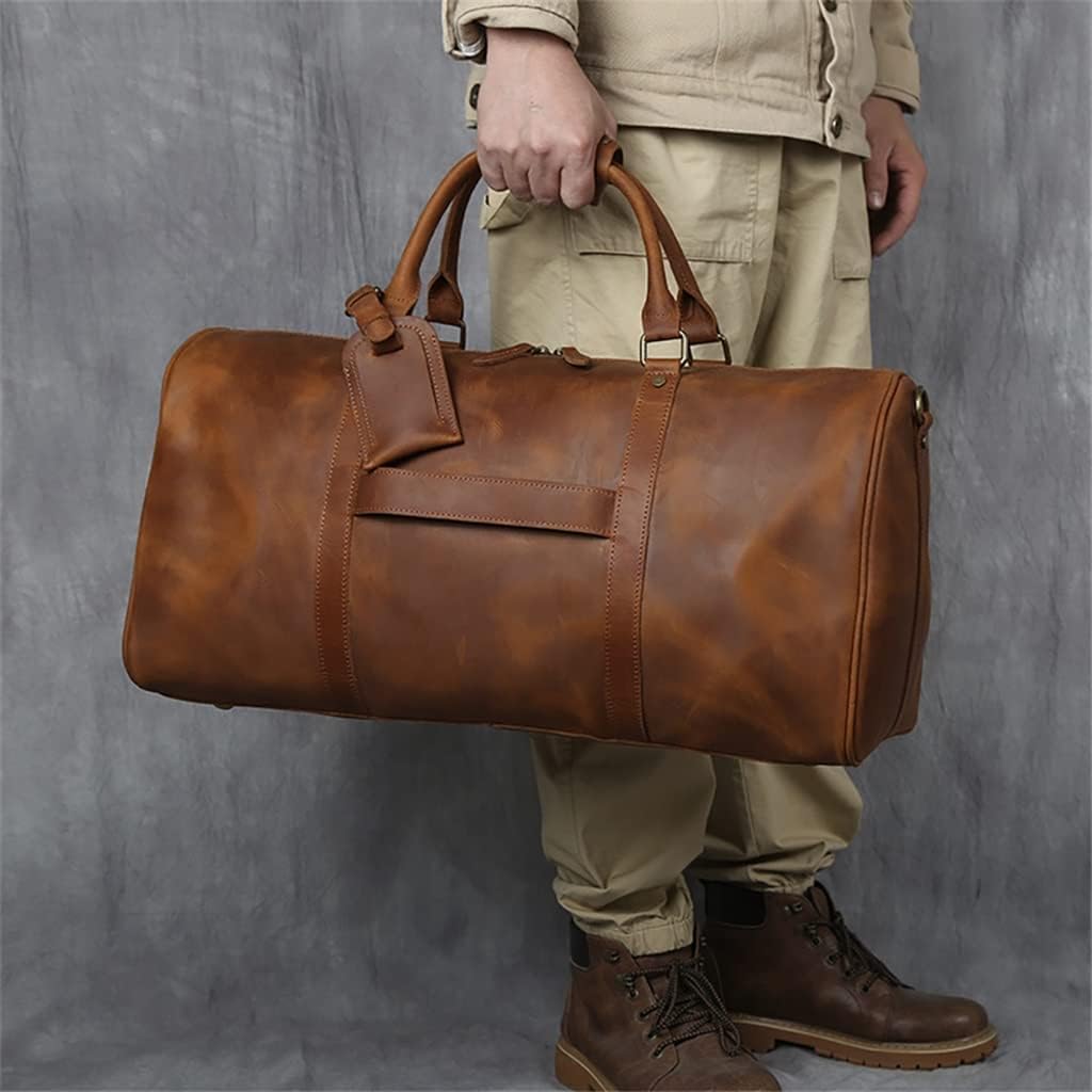 LIUJUN Retro Men's Hand Luggage Bag Travel Bag Geunine Leather Large Capacity Single Shoulder Messenger For 15 Inch Laptop